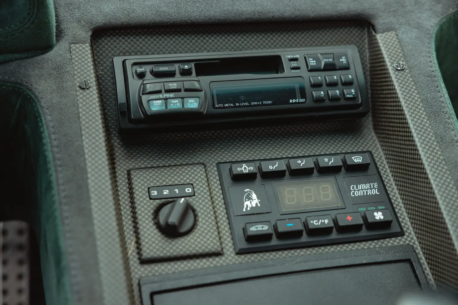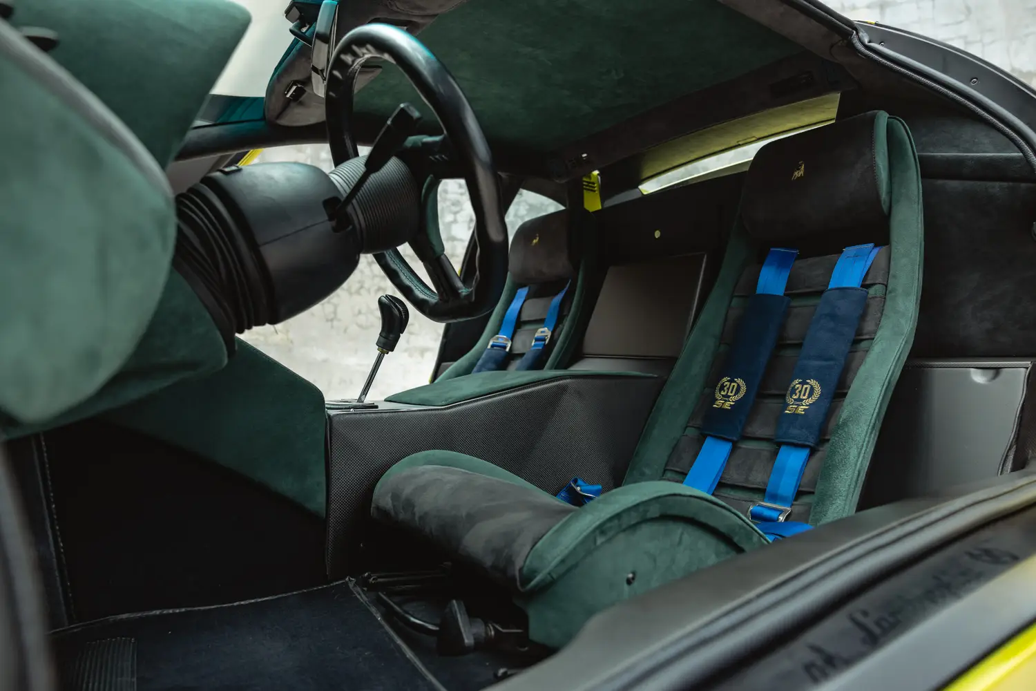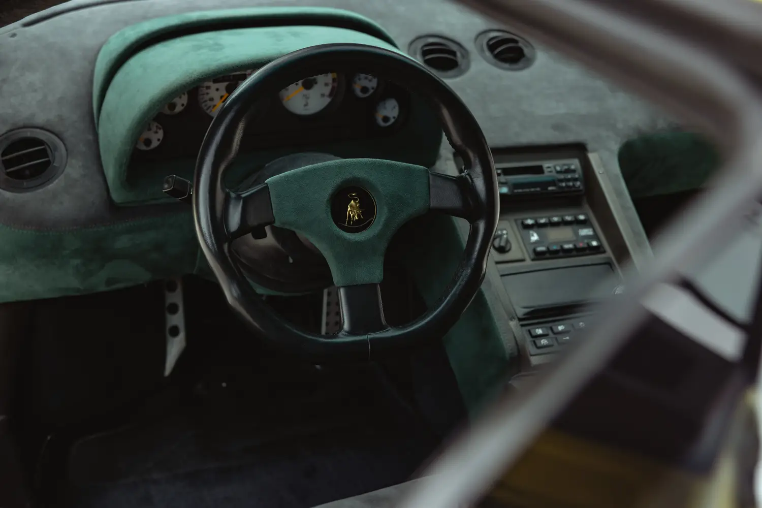 Curated is pleased to offer this 1994 Lamborghini Diablo SE30, number 76 of 150 examples produced and one of two finished in Verde Roadster over Green/Grey Alcantara. Built to mark Lamborghini’s 30th anniversary, the SE30 introduced weight reduction measures along with revised intake and exhaust systems. Originally delivered to Garret Bloemendal in Holland on November 15, 1994. Factory options include harnesses, ash tray, and fire suppression system. The car is fitted with correct 2023 Pirelli tires and retains its Alpine radio. Accompanying the vehicle are its toolkit, all manuals, and warranty booklet.
